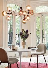 تجدر الإشارة إلى أن استخدام طرازات Art Nouveau يسمح لك بإظهار خصوصية التصميم الداخلي بأكمله. يحاول العديد من المصممين ، باستخدام المصابيح ، التركيز بشكل رئيسي على هذه العناصر. من النقاط المهمة في إنشاء تصميم داخلي متناغم هو المزيج الصحيح من الأثاث والديكور والإضاءة. يجب أن يكون التصميم حديثًا وعمليًا في نفس الوقت.