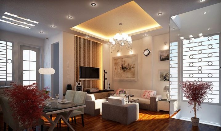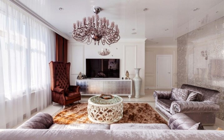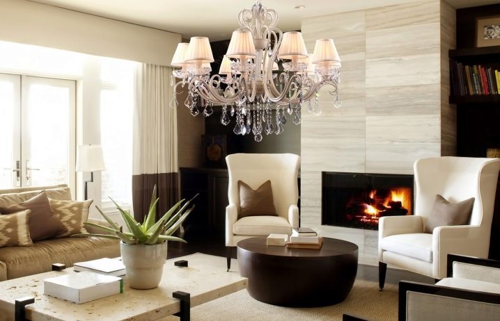 - بالنسبة لغرفة المعيشة أو القاعة الكبيرة ، يجدر استخدام الثريات الكبيرة.. في الموديلات الحديثة ، يمكنك تثبيت عدة لمبات في نفس الوقت ، مما يسمح لك بإنشاء إضاءة عالية الجودة في الغرفة..