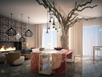 - تم تجهيز النماذج الحديثة بتفاصيل ضخمة ، لا تخيف من هذا. العناصر القوية الكبيرة هي جزء من أسلوب الدور العلوي. على خلفية غرفة كبيرة بها العديد من المساحات المفتوحة ، تختفي ضخامتها وستبدو ذات حجم عادي..