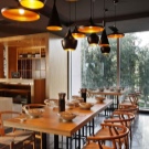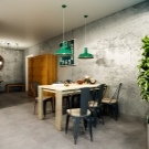 تبدو المعلقات المعدنية غير العادية وكأنها مطلية على جدار رمادي. يمتزج البناء الهندسي والأبيض النقي بشكل مذهل لتشكيل ثنائي عصري أنيق. مجموعة من الثريات تلفت الأنظار ، وهي بمثابة فارق بسيط أساسي في الداخل.