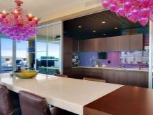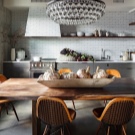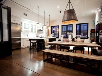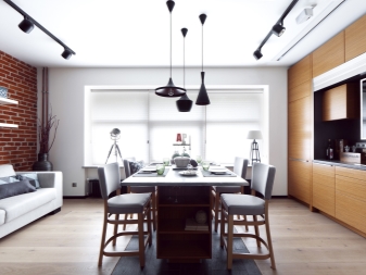- في المطبخ يُنصح باستخدام أغطية المصابيح المصنوعة من الألومنيوم أو إطارات الجنزير فوق الطاولة. بشكل عام ، تعتبر الثريا الخاصة بالمطبخ في الدور العلوي هي الخيار الأفضل ، لأنها لا تشغل مساحة أرضية ، مما يترك مساحة أكبر للمناورات. لن تناسب النماذج الزجاجية هنا ، فإن التجاهل المؤكد للافتخار بالمطبخ هو من المحرمات.