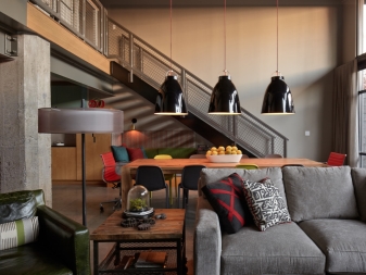 يتطلب النمط الصناعي الحضري للدور العلوي موقفًا مدروسًا تجاه اختيار الثريات وتركيبات الإضاءة بشكل عام. ترجمت من اللغة الإنجليزية “loft” تعني “العلية” ، والتي ، في الواقع ، تميز هذا النمط جيدًا.