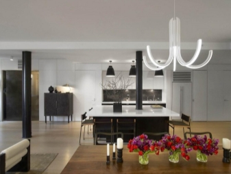 يتم اختيار نوع معين من الثريا لكل غرفة. في البداية ، لم يكن للغرف العلوية حواجز وجدران ، وكانت الغرفة بأكملها عبارة عن شقة ، لذلك تم تمييز كل مجال من المجالات الوظيفية بطريقته الخاصة وبنوع من الأجهزة. يجب أيضًا مراعاة هذه النقطة عند اختيار الثريا..