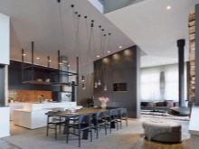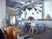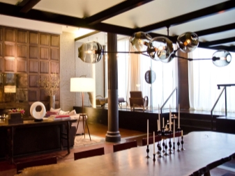 “الضوء ، مزيد من الضوء! “- هذا هو شعار الغرف ذات الطراز العلوي. في الواقع ، تتطلب المساحات المفتوحة الضخمة أسفل الأقواس العالية للأسقف ذات العوارض إضاءة ماهرة ، والتي لا يمكن إنشاؤها في كثير من الأحيان إلا من قبل مصمم متمرس..