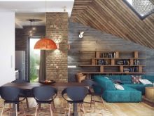 بغض النظر عن الغرفة ، تجدر الإشارة إلى أن أسلوب الدور العلوي لا يقبل خيارات عتيقة رومانسية رقيقة للألوان والتصاميم. لا تجرب ، خاصة إذا كانت الثريا باهظة الثمن..
