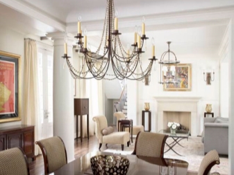 - القوطية. يختلف في مظهر مقيد وليس له تشطيب إضافي. تعتبر الثريات المعلقة المصنوعة من الحديد المطاوع على السلاسل مثالية لذلك..