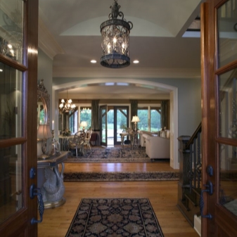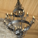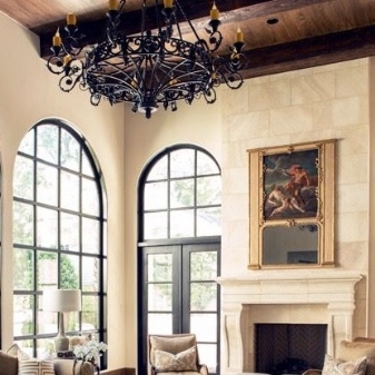 - ثريات كبيرة من الحديد المطاوع معلقة في غرف فسيحة. تبدو رائعة في التصميمات الداخلية الباروكية وفن الآرت نوفو. الشيء الرئيسي هنا هو أن الغرفة ذات سقوف عالية..