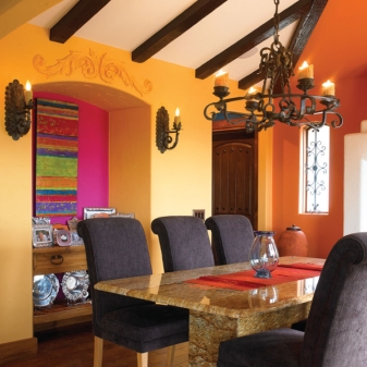 - عصري. إنها قريبة جدًا من بساطتها ، ولكن في هذا الاتجاه ، غالبًا ما تستخدم ثريا مزورة للإضاءة الثانية. في هذه الحالة ، يمكن تزيينه بعدد كبير من تجعيد الشعر ، أو على العكس من ذلك ، التمسك بمظهر بسيط وضبط النفس..