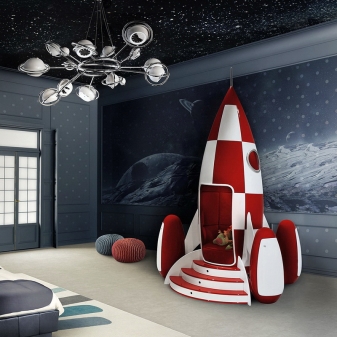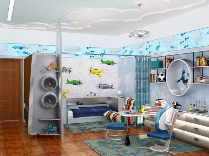 - إذا كان الفتى الهذيان حول السماء, يجدر التعامل مع فهم رغباته وهواياته. ثريا معلقة على شكل طائرة أو معلقة من العديد من الطرز الصغيرة ستسعد الطفل وتضفي على الغرفة الجو اللازم من التهوية والطيران.