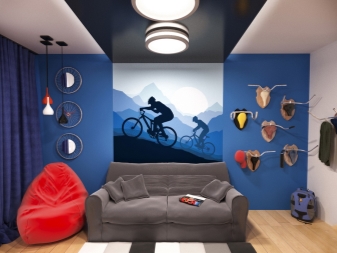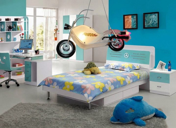 - لصبي أو مراهق في سن المدرسة شغف الدراجات النارية – المرحلة الطبيعية للنمو ، لذا فليس من المستغرب أن يرغب في وقت ما في تزيين الغرفة بهذه الطريقة. تتناسب الثريات على شكل دراجات نارية أو المصابيح الأمامية للدراجات النارية أو الأضواء الكاشفة مع الموضوع العام ، مع توفير مستوى كافٍ من الإضاءة.