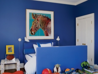 من المستحسن أن يكون هناك القليل من اللون الأزرق في الغرفة: تؤدي وفرة هذا اللون إلى اليأس واللامبالاة وفي بعض الحالات حتى الاكتئاب. يجب استكمال الثريا الزرقاء بتفاصيل بيضاء أو صفراء مشرقة..