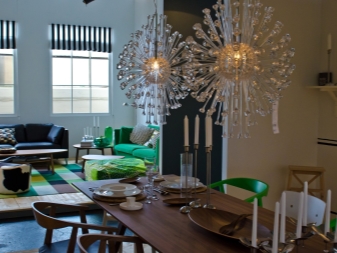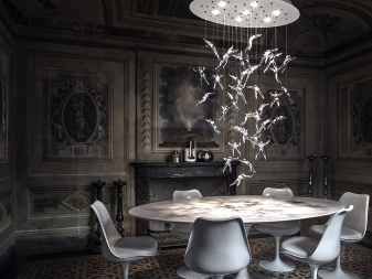 في عالم التصميم ، يمكن للمرء أن يسمع في كثير من الأحيان الرأي القائل بأن التصميم الداخلي يجب أن يتناسب مع الثريا ، وليس لتناسبه. هذا الرأي له الحق في الوجود ، لكن الكثيرين يختلفون معه. عند شراء ثريا غير عادية ، يجب عليك أولاً تحديد النمط العام للغرفة ، لأن المنتج غير العادي يمكن أن يصبح مركز المساحة بأكملها وإضافتها..