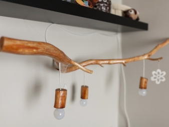 ألهم هذا الآخرين أيضًا ، وسرعان ما عادت الموضة لمثل هذه الشمعدانات. يمكنك الآن صنع مصباحك الفريد من خلال تزيين الخشب بالأكاليل أو لمبات LED. سيؤدي ذلك إلى جعل التصميم الداخلي غير عادي حقًا وضبط كل شيء فقط من أجلك وتفضيلاتك..