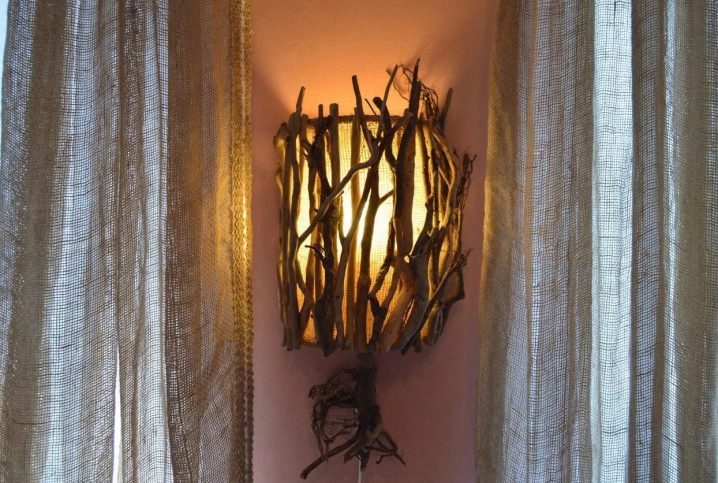 المصابيح المصنوعة يدويا تستحق اهتماما خاصا. إنه دائمًا شيء فريد وغير عادي. في الوقت نفسه ، ليس من الضروري دائمًا أن تكون قادرًا على العمل بالخشب – يمكن إنشاء مصباح أنيق حتى من غصين بسيط مغطى بالورنيش وتشريب خاص.