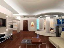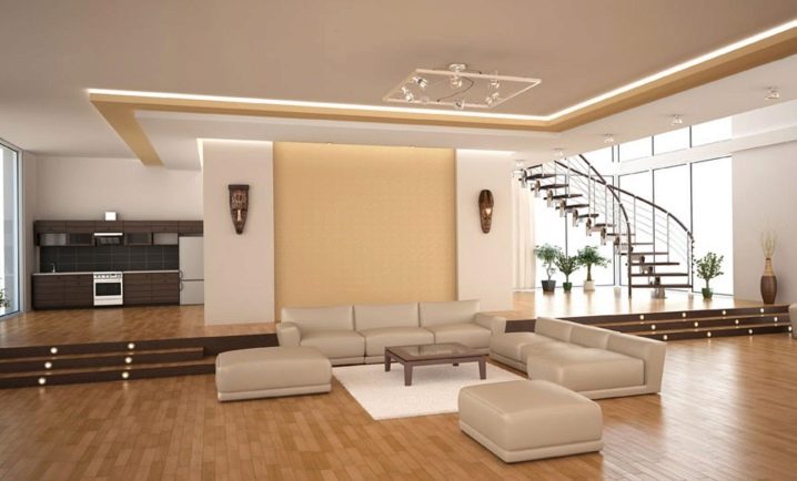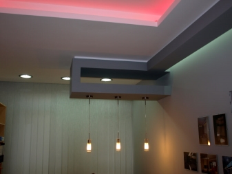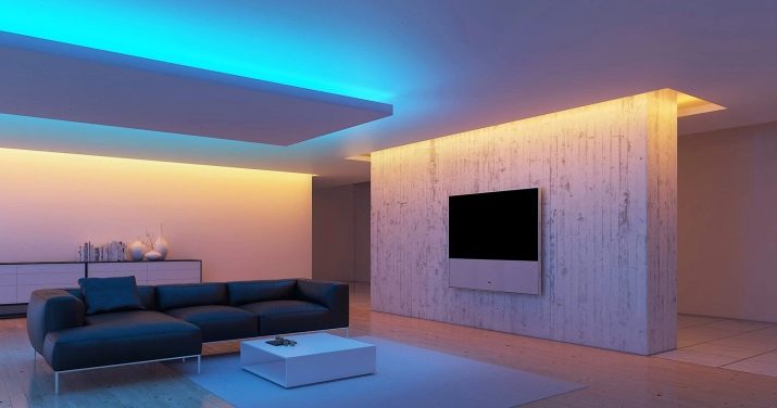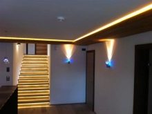 في التصميم الحديث ، من المعتاد التركيز على الأسقف ذات المستويين ، لذا فإن استخدام الأضواء الكاشفة أو شرائط LED إلزامي. من المهم التأكيد على المستويات المختلفة واختلافها. على سبيل المثال ، تتمثل إحدى الطرق الكلاسيكية في تركيب شريط LED في مكان مناسب بين مستويات الحوائط الجافة..