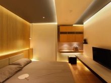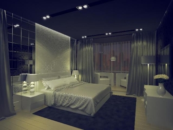 - أضواء كاشفة يجب أن توضع فوق المناطق التي تحتاج إلى التأكيد. لا يجب أن يكون هناك أي تفاصيل مهمة. من الممكن وضع هذه المصابيح على رأس السرير بتجهيزها بمفتاح منفصل..