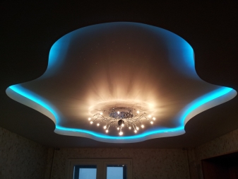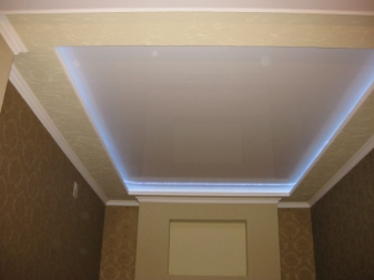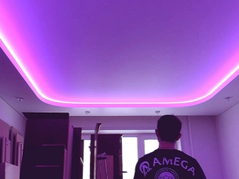بالنسبة للأسقف المتوترة ، يتم استخدام ثلاثة أنواع من مصابيح السقف: مصباح معلق أو إضاءة راحة أو إضاءة محيطية. يعد الخيار الأخير شائعًا بشكل خاص بالنسبة لأسقف اللوح الجصي ، حيث يتيح لك التأكيد على تركيبة متعددة المستويات مثيرة للاهتمام.