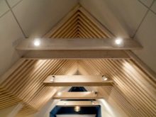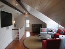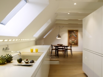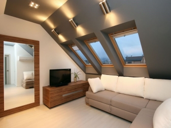 تأكد من إضاءة كل ركن من أركان العلية. عند التخطيط ، تأكد من كتابة كيفية تزيين الجزء المظلمة ، لأن ضوء المصباح المركزي لا يكفي في كثير من الأحيان. إذا صممت سقفًا مائلًا بشكل صحيح ، فسيكون من الممكن “رفعه” بصريًا ، مما يجعل الغرفة تبدو أكبر وأكثر راحة.