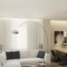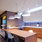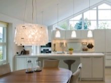 - إلى جانب خلق الإضاءة, يجب أن تقسم مصابيح السقف الغرفة إلى مناطق وظيفية مختلفة. لهذا الغرض ، يتم تعليق المصابيح المعلقة على ارتفاعات مختلفة..