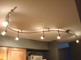 بالإضافة إلى هياكل القضبان ، يمكن أيضًا تجهيز أفاريز الرغيف الفرنسي بالإضاءة. تحتوي بعض الطرز حتى على تجاويف خاصة بحيث يوجد مكان لإخفاء الأسلاك. على أي حال ، لن تكون هناك مشاكل في إخفاء الأسلاك: يمكن إخفاؤها بسهولة خلف الشريط الزخرفي.
