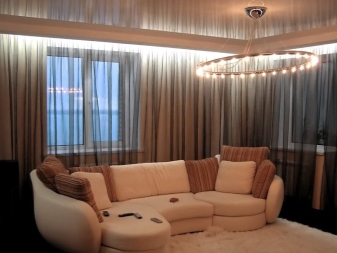 يمكن وضع المصباح المعلق حتى في منتصف الغرفة ، على الأقل في عدة أماكن. لا يحظر استخدام عدة أنواع مختلفة من الثريات. يتم ذلك لتقسيم المساحة إلى مناطق ، خاصة عندما يتعلق الأمر بشقق الاستوديو الكبيرة. عند اختيار المصابيح للثريا ، يجب ألا يغيب عن البال أن قوتها يجب ألا تزيد عن 40 وات إذا كان المصباح قريبًا من السقف ، وإلا فقد تتشوه ورقة السقف.