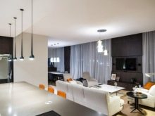 ومع ذلك ، إذا كنت المالك المحظوظ للأسقف التي يبلغ ارتفاعها ثلاثة أمتار ، فهناك طريقة للخروج من هنا. عادت ثريات السقف القابلة لضبط الارتفاع مؤخرًا إلى الموضة. إذا رغبت في ذلك ، يمكن خفضها ، وإضاءة أي تفاصيل بشكل ساطع ، ورفعها ، إذا لزم الأمر ، وإعادة الإضاءة المنتشرة الناعمة.