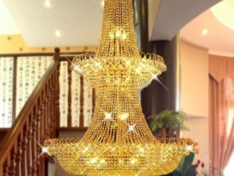 إذا كانت المساحة كبيرة بما يكفي ، فإن الثريات المعلقة بالكريستال ستكون خيارًا لا تشوبه شائبة. يمكن صنعها على شكل طبقة واحدة أو عدة طبقات ، مزينة بالمعلقات. يتم تصميم مثل هذا الجهاز الخفيف باستخدام نظام التعليق ، والذي غالبًا ما يكون على شكل سلسلة. يتم وضعها في القاعات وغرف المعيشة وبهو المسارح والمباني الإدارية..