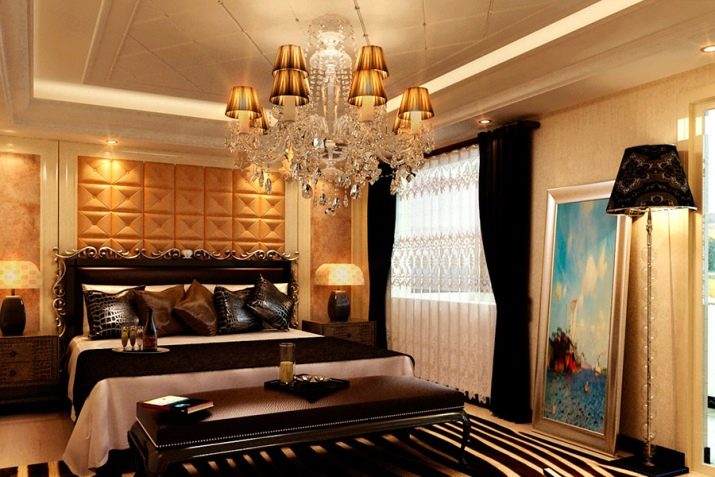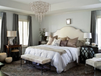 عند اختيار مصابيح لغرفة النوم ، يجب الانتباه إلى ارتفاع السقف وحجم السرير ونظام الألوان العام للبيئة..