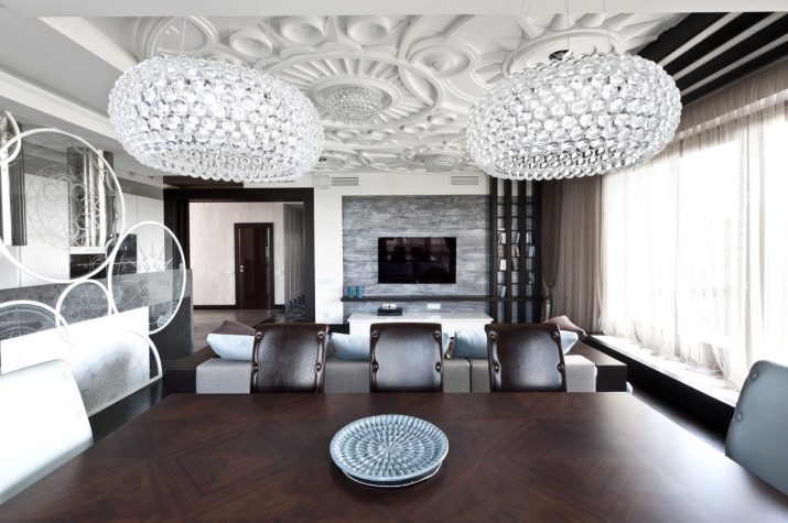 عند اختيار الثريات ، لا تدفع نفسك إلى الإطارات. تتيح لك وفرة الحلول إنشاء تصميم داخلي أنيق.
