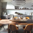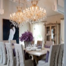 إذا كانت مساحة تناول الطعام كبيرة بما يكفي ، فإن أفضل بديل هو وضع تعليق بلوري فوق الطاولة في منطقة تناول الطعام. هذا سيضيف الجدية إلى أي وجبة..
