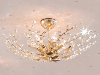 من المعتاد تقسيم أجهزة الإضاءة الكريستالية وفقًا لنوع المرفق إلى معلق وسقف.