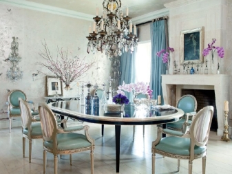 سيقدر عشاق خمر الكريستال أيضًا. يتناسب تمامًا مع أسلوب “بروفانس” ، “رث شيك” ، مع التركيز على “رث” المتطور. تمنح البلورات المتلألئة الراحة ، وتعطي التصميمات المزخرفة نوعًا من الحنان والتأثير الزخرفي. من حيث المبدأ ، لا تفرط في تحميل الموقف ، فالروعة المفرطة في هذه الصورة غير مناسبة ومرهقة.