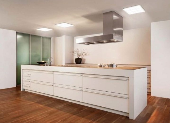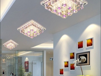تعتبر المصابيح المثبتة على السطح أو المريحة مناسبة تمامًا للديكورات الداخلية الحديثة. يتم إنتاجها بألوان مختلفة. كما أنها تختلف في المعلمات. يمكنك العثور على خيار أكبر مثبت في وسط السقف. ولكن ، كقاعدة عامة ، يفضل المصممون استخدام عدة مصابيح مربعة صغيرة في وقت واحد..