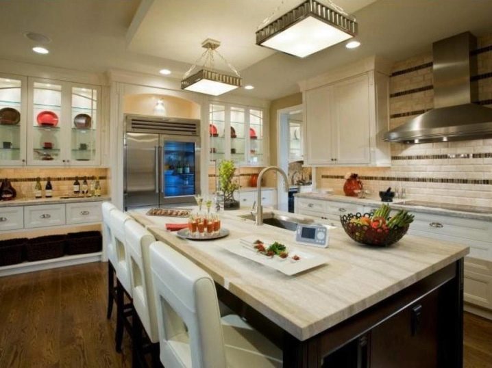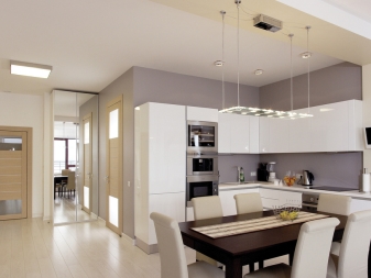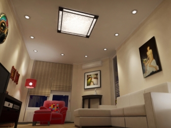 لا يمكنك تثبيت مصباح مركزي واحد فحسب ، بل يمكنك تثبيت عدة مصابيح. هذا يجعل من الممكن وضع لهجات في الأماكن الصحيحة أو حتى تقسيم المنطقة إلى عدة مناطق وظيفية..