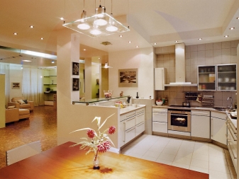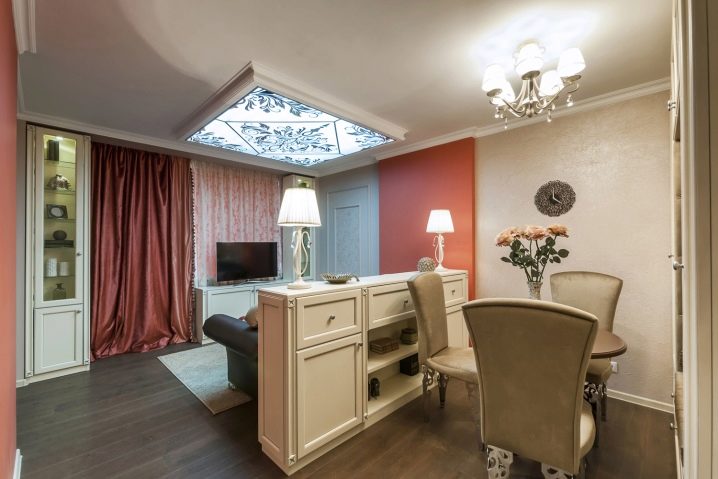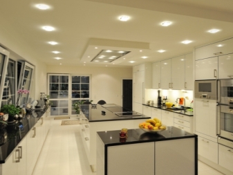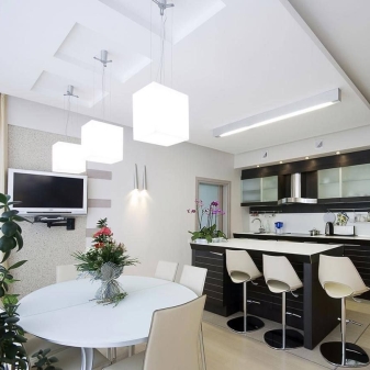 لا يمكنك تثبيت مصباح مركزي واحد فحسب ، بل يمكنك تثبيت عدة مصابيح. هذا يجعل من الممكن وضع لهجات في الأماكن الصحيحة أو حتى تقسيم المنطقة إلى عدة مناطق وظيفية..