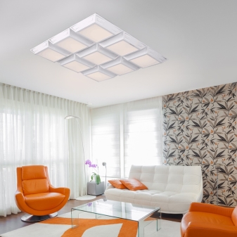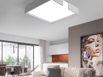 تعتبر المصابيح المثبتة على السطح أو المريحة مناسبة تمامًا للديكورات الداخلية الحديثة. يتم إنتاجها بألوان مختلفة. كما أنها تختلف في المعلمات. يمكنك العثور على خيار أكبر مثبت في وسط السقف. ولكن ، كقاعدة عامة ، يفضل المصممون استخدام عدة مصابيح مربعة صغيرة في وقت واحد..