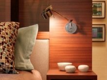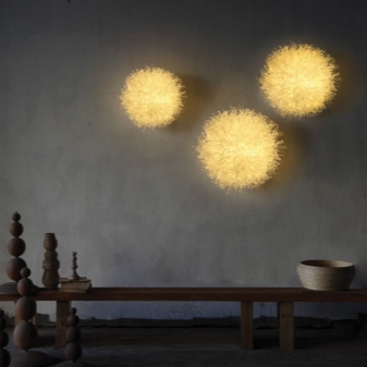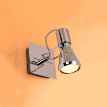- مثبت على الحائط باستخدام أقواس خاصة مع عاكس الضوء أو الظل. تجذب هذه النماذج الانتباه بأشكالها الأصلية وهي مناسبة لأفكار التصميم. يقرر بعض المستخدمين اختيار نماذج أرضية مثبتة على مستوى الأرضية وإنشاء صورة مذهلة ؛