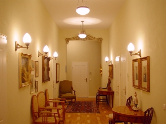 إذا كانت لديك جدران فارغة في الردهة ، فإن تجهيز مصابيح الحائط بارتفاع الإنسان سيكون الخيار الأفضل. يقوم العديد من أصحاب الشقق بتركيب الشمعدانات حول حواف المرايا واللوحات. مثل هذا الحل يمكن أن يحول بشكل كبير داخل الغرفة..