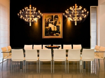 إذا كنت تريد أن تعمل مصابيح الحائط كإضاءة خلفية للوحات ، فاحرص على الانتباه إلى الموديلات ذات التصميم الخفي. في هذه الحالة ، يعتبر الظل غير اللامع جزءًا لا يتجزأ من الفكرة..