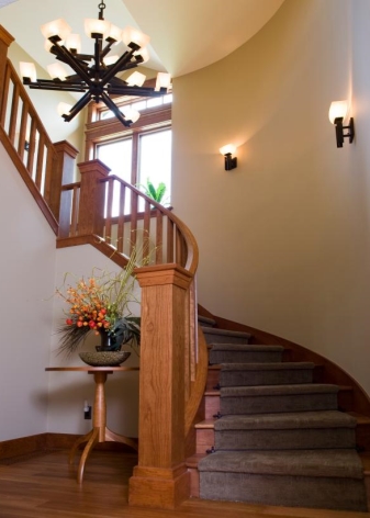 الشمعدان يبدو مذهلاً في الممر وعلى الدرج. تزين هذه العناصر بنجاح السلالم والغرف الضيقة ، مما يساهم في إنشاء تصميم داخلي متناغم..