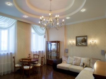 - في معظم الحالات ، يتم شراء الشمعدانات في اللحظة الأخيرة ، عندما تم الانتهاء من التجديد بالفعل. في هذه الحالة ، لا توجد طريقة لتنفيذ الأسلاك دون إتلاف خلفية الشاشة. سيكون الحل هو شراء الطرز التي تعمل بالطاقة من منفذ ولها مفتاح على الأسلاك. مثل هذه السقوف لا تبدو مثيرة للإعجاب..