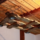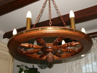 تركيبات الإضاءة الخشبية مطلوبة أيضًا لإنشاء تصميمات داخلية قديمة. بهذه التفاصيل ، يمكنك الانغماس في أي عصر تقريبًا. في الآونة الأخيرة ، تكتسب شعبية المصابيح المصنوعة من “العتيقة” على شكل عجلة من عربة ، حيث يتم ترتيب المصابيح على شكل شموع بشكل متناظر حول المحيط. يستخدم هذا الديكور في تصميم الديكور الداخلي للمنزل على طراز العصور الوسطى ، وكذلك للمؤسسات العامة المصممة (المقاهي والحانات والمطاعم والفنادق وما إلى ذلك)..