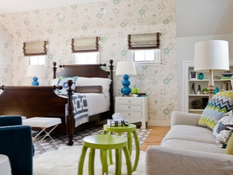 - ظلال غير عادية ستبدو مجموعة متنوعة من الألوان الزاهية جذابة للغاية في غرفة المعيشة بأسلوب بسيط أو ، على سبيل المثال ، في غرفة الطفل. يمكن تغييرها بشكل دوري بعد الشراء ، والتقاط ألوان جديدة وحتى أشكال.