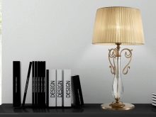 - مصباح مطوي في الألوان الفاتحة والبيج والباهتة والباستيل ، سيبدو جيدًا جدًا على خلفية ورق الحائط ذي الألوان الناعمة ، وكذلك بجانب الأثاث المماثل. بالطبع ، سيتم دمج هذا النوع من مصابيح الطاولة مع الستائر ذات الثنيات. معًا سيخلقون ثنائيًا متناغمًا.