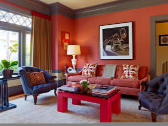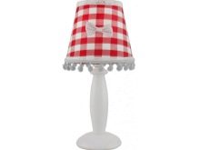 - نموذج بظل أحمر فاتح أو قاعدة مناسبة لإضافة التباين إلى غرفة هادئة ومشرقة. على العكس من ذلك ، سيظهر المصباح ذو اللون البيج بشكل إيجابي على خلفية الداخل المشرق وورق الحائط المشرق..