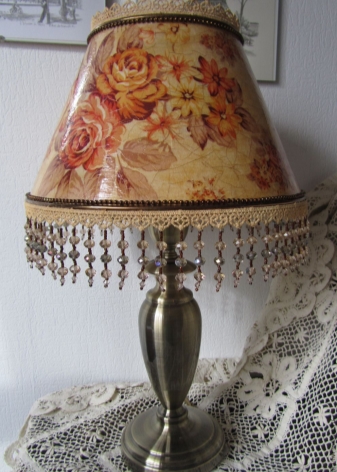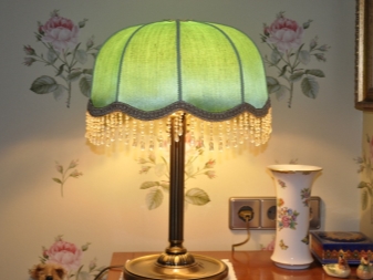- يمكن أن توفر التصميمات الداخلية الباهتة وغير المثيرة للاهتمام المصابيح مع زخارف زاهية مختلفة عليهم. وتشمل هذه المنتجات ذات الحواف متعددة الألوان أو الصلبة على عاكس الضوء ، وكذلك المزينة بالورود. ستبدو الزخرفة المصنوعة من الخرز والخرز أصلية جدًا على عاكس الضوء. بالمناسبة ، يمكنك بسهولة القيام بذلك بنفسك على مصباح طاولة جاهز. سيكون عنصر التصميم غير العادي هذا قادرًا على تحويل الجزء الداخلي للغرفة بشكل لا يمكن التعرف عليه..