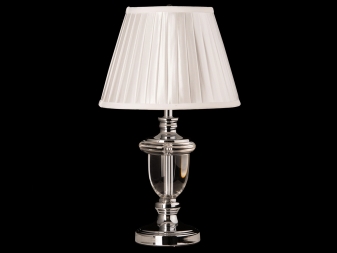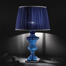 هناك عدة أنواع من مصابيح الطاولة مع عاكس الضوء: بقاعدة زجاجية وسيراميك.