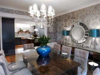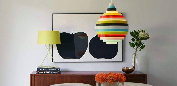 سيبدو المصباح الكبير ذو التنسيق الكبير ، المطلي بلون أحادي اللون مشرق ، في وسط طاولة زجاجية طويلة ، أنيقًا وأنيقًا. ستكون قادرة على تخفيف المحافظة على المظهر الداخلي والخارجي للغرفة ، ومنحها أسلوبًا وجعلها أقل اعتيادية. ومع ذلك ، يجدر تجربة مثل هذه الأشياء بحذر: هناك احتمال كبير لإفساد مظهر الغرفة ، لأن المصباح قد يبدو “لامعًا جدًا”.