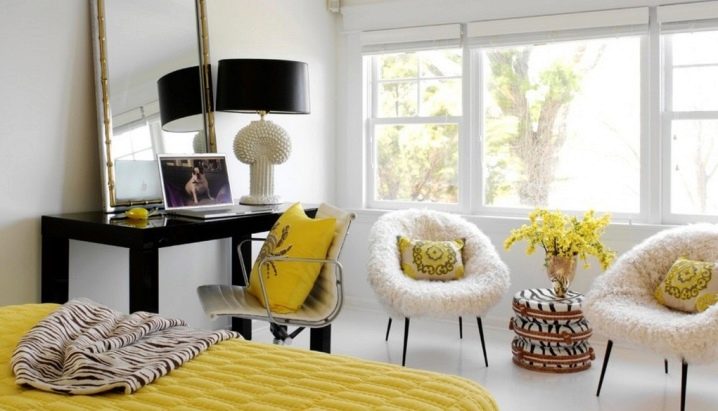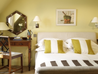 - نماذج صفراء وزرقاء مناسب للغرف ذات ورق الحائط بألوان هادئة وهادئة. أيضًا ، تتوافق هذه الألوان معًا ، على سبيل المثال ، على نفس المنتج. يتناسب الطراز ذو الظل الوردي جيدًا مع الداخل ، على سبيل المثال ، باللون الأصفر الباستيل.