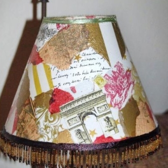 استعادة المصباح ليست بهذه الصعوبة. يمكنك إصلاح أجزاء الإطار المكسورة أو عاكس الضوء الممزق بمساعدة مواد الخردة. إذا كان ظهور المنتج فجأة مملًا تمامًا للعين أو بالملل فقط ، فيمكنك استخدام تقنية مثل decoupage ، أو البدء في تزيين عاكس الضوء والقاعدة.
